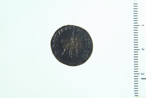 Dritto: Testa laureata di Traiano a d.; contorno perlinato.. Rovescio: Vittoria seduta a s., reggente palma nella s. e patera nella d. protesa; contorno perlinato.