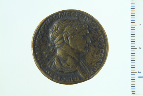 Dritto: Busto laureato di Traiano d., con paludamentum; contorno perlinato.. Rovescio: Felicitas stante a s., reggente cornucopia nella s. e cuduceo nella d. sollevata; contorno perlinato.
