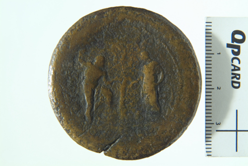 Dritto: Testa laureata di Adriano a d.; contorno perlinato.. Rovescio: Nemesi alata, avanzante a d., reggente ramo nella s.; lembo della veste sollevato con mano d. in un gesto apotropaico; contorno perlinato.