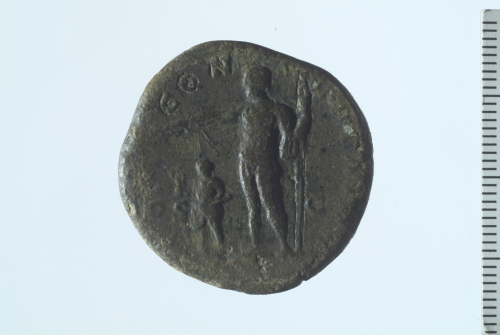 Dritto: Busto drappeggiato di Commodo a d.. Rovescio: Giove stante a s., recante fulmine e scettro; accanto, Commodo stante a s. con trofeo.