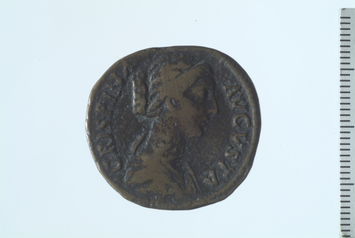 Dritto: Busto drappeggiato di Crispina a d.; contorno perlinato.. Rovescio: Concordia seduta a s., recante cornucopia e patera; contorno perlinato.