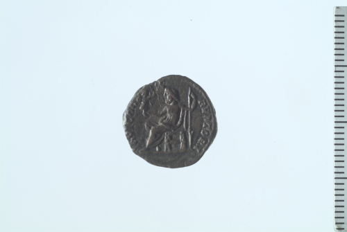 Dritto: Testa laureata di Settimio Severo a d.; contorno perlinato.. Rovescio: Giustizia seduta a s., recante patera e scettro; contorno perlinato.