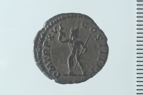 Dritto: Testa laureata di Settimio Severo a d.; contorno perlinato.. Rovescio: Giove stante a d., recante scettro, in atto di brandire un fulmine; contorno perlinato.