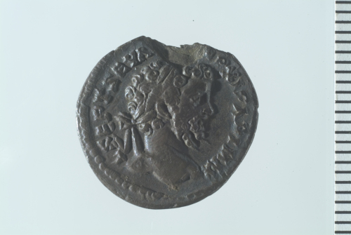 Dritto: Testa laureata di Settimio Severo a d.; contorno perlinato.. Rovescio: Iscrizione entro corona; contorno perlinato.