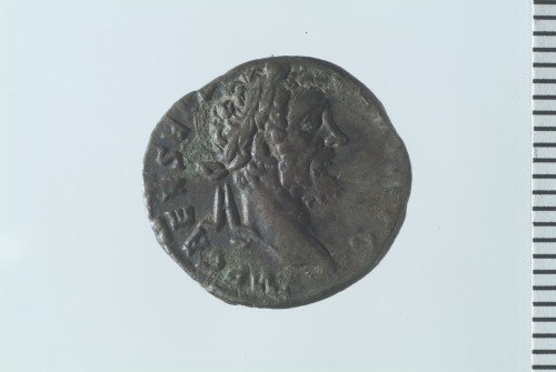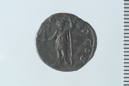 Dritto: Testa laureata di Settimio Severo a d.; contorno perlinato.. Rovescio: Fides stante a s., recante Vittoria e stendardo; contorno perlinato.