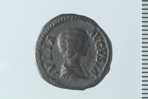Dritto: Busto drappeggiato di Giulia Domna a d.; contorno perlinato.. Rovescio: Pietas, velata, recante cassetta e stante a s. in atto di offrire incenso su altare a s.; contorno perlinato.