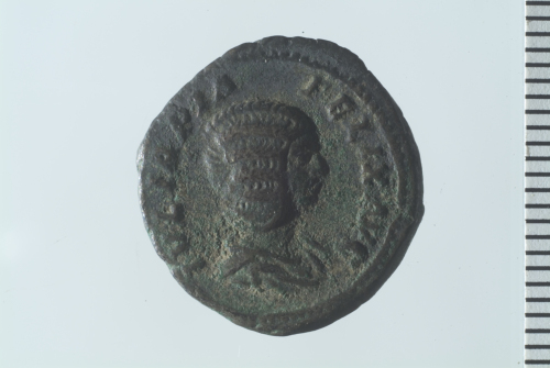 Dritto: Busto drappeggiato di Giulia Domna a d.; contorno perlinato.. Rovescio: Diana stante a s., recante torcia; contorno perlinato.