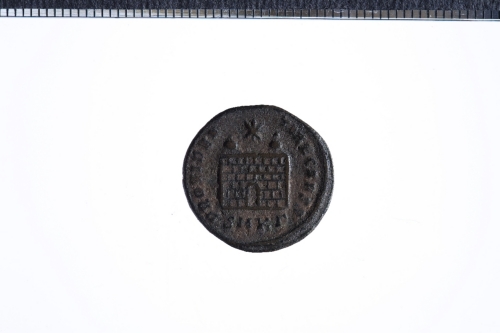 Dritto: Busto drapp., corazz. e laur. di Crispo a s.. Rovescio: Porta di accampamento sovrastata da due torri con al centro una stella, es. SMK(gamma)