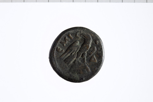 Dritto: Testa laureata di Antonino Pio a d.. Rovescio: Aquila stante su pietra sacra, testa a s., corona nel becco.