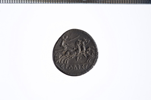 Dritto: Testa velata e con corona turrita di Cibele a d.; c.p.. Rovescio: Vittoria in biga a d. che regge le redini con la s. e un frustino con la d.; davanti, un uccello; c.p.