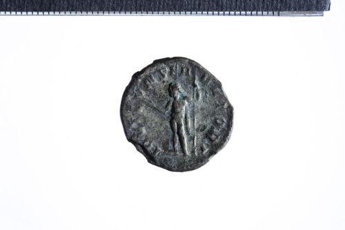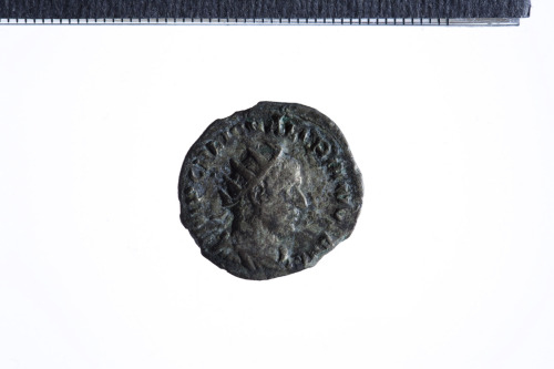 Dritto: Busto radiato e drappeggiato di Valeriano a d.; contorno perlinato.. Rovescio: Giove stante a s. con fulmine e scettro; contorno perlinato.