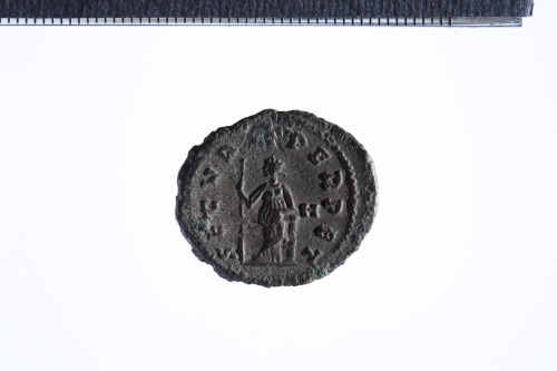 Dritto: Busto radiato di Gallieno a d.; contorno perlinato.. Rovescio: Securitas stante frontalmente rivolta a s. con gambe incrociate e scettro, si appoggia a una colonna; contorno perlinato.
