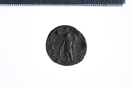 Dritto: Busto radiato e drappeggiato di Gallieno a d.; contorno perlinato.. Rovescio: Soldato stante a s. con lancia e appoggiato a uno scudo; contorno perlinato.