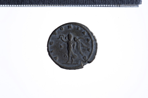Dritto: Busto radiato e drappeggiato di Gallieno a d.; contorno perlinato.. Rovescio: Vittoria incedente a s. con ghirlanda e ramo di palma; contorno perlinato.