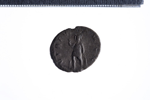 Dritto: Busto radiato e corazzato di Gallieno a d.; contorno perlinato.. Rovescio: Soldato elmato stante a s. con lancia appoggiato a uno scudo; contorno perlinato.