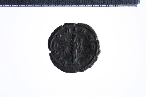 Dritto: Busto radiato di Gallieno a d.; contorno perlinato.. Rovescio: Vittoria stante a s. con ghirlanda e ramo di palma; contorno perlinato.