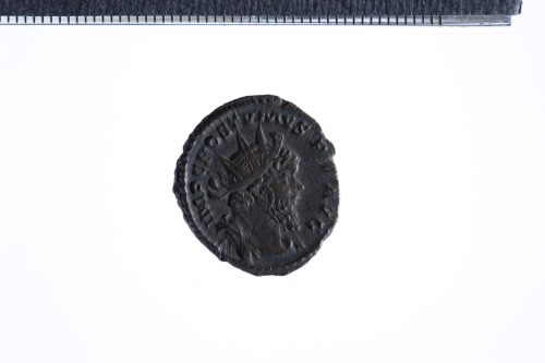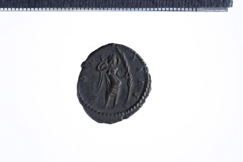 Dritto: Busto radiato, drappeggiato e corazzato di Postumo a d.; contorno perlinato.. Rovescio: Vittoria stante a d. con ghirlanda e ramo di palma; contorno perlinato.
