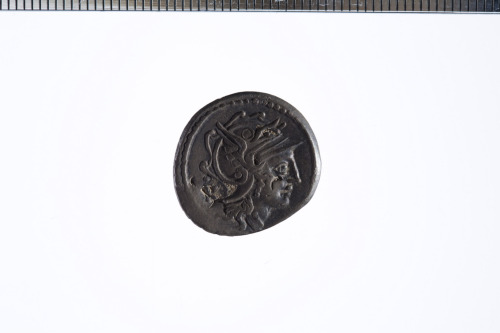 Dritto: Testa galeata di Roma a d.;c.p.. Rovescio: Triumphator in quadriga a d. che regge un ramo di alloro con la s. e un bastone nella d.; nel cavallo più vicino è seduto un cocchiere che regge un ramo d'alloro; c.p.