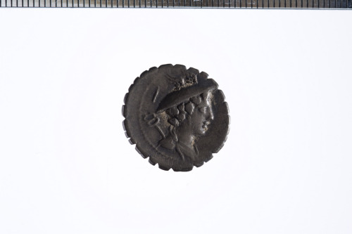 Dritto: Busto di Mercurio a d., drappeggiato e con il caduceo sopra la spalla; c.p.. Rovescio: Ulisse stante a d. si appoggia ad un bastone che impugna con la s. e allunga la d. verso il cane Argo; c.p.