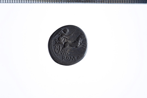 Dritto: Testa galeata di Roma a d.; dietro simbolo di valore X; c.p.. Rovescio: Vittoria su biga a d. tiene le redini con la s. e frusta nella d.; es. ROMA; c.p.