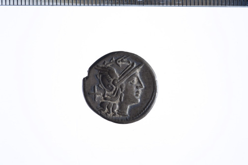 Dritto: Testa galeata di Roma a d.; dietro simbolo di valore X; c.p.. Rovescio: Vittoria su biga al galoppo a d., regge le redini con la s. e la frusta nella d.; es. ROMA in contorno lineare