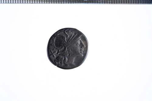 Dritto: Testa galeata di Roma a d.; dietro simbolo di valore X; c.p.. Rovescio: Vittoria su biga al galoppo a d., regge le redini con la s. e la frusta nella d.; es. ROMA in contorno lineare
