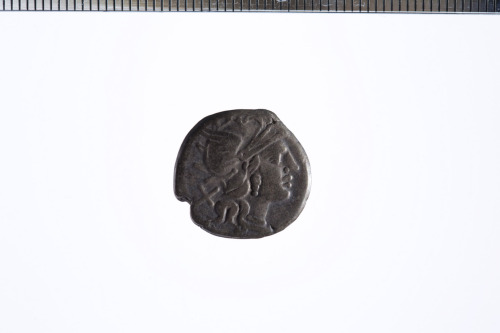 Dritto: Testa elmata di Roma a d.; dietro simbolo di valore X, c.p.. Rovescio: Vittoria su biga trainata da capricorni al galoppo verso d., con scettro e redini nella s. e frusta nella d.; es. ROMA