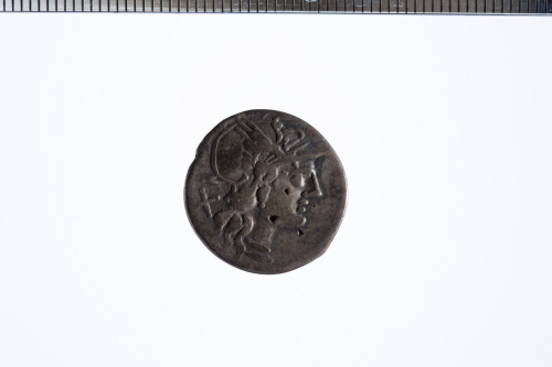 Dritto: Testa elmata di Roma a d.; dietro simbolo di valore X, c.p.. Rovescio: Vittoria su biga a d.; es. ROMA