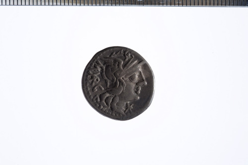 Dritto: Testa elmata di Roma a d., davanti simbolo di valore X barrato, c.p.. Rovescio: Giove su quadriga verso d.; es. ROMA