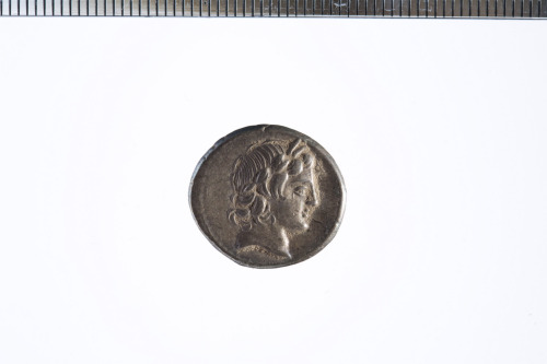 Dritto: Testa laureata di Apollo a d.; c.p.. Rovescio: Marsya con la testa calva, cammina a s., con il braccio d. alzato sopra la testa e un otre di vino sopra la spalla s.; dietro di lui una colonna con sopra la statua di una Vittoria; c.p.