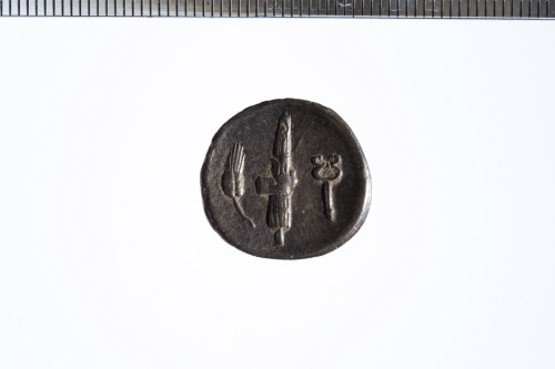 Dritto: Testa diademata di Venere a d.; c.p.. Rovescio: Spiga di grano, fasci con ascia e caduceo; c.p.