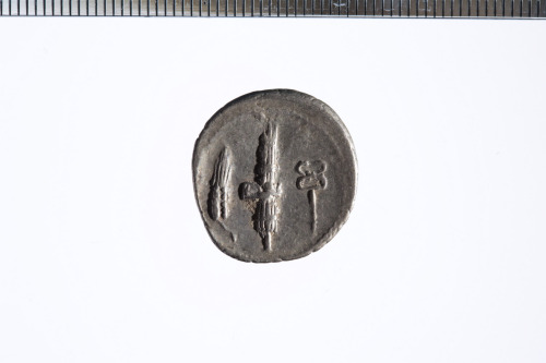 Dritto: Testa diademata di Venere a d.; c.p.. Rovescio: Spiga di grano, fasci con ascia e caduceo; c.p.