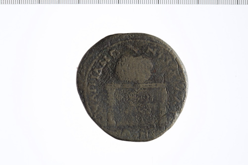 Dritto: Busto di Settimio Severo drappeggiato e laureato a d.. Rovescio: Tavola agonistica sulla quale è una corona per giochi con ramo di palma.