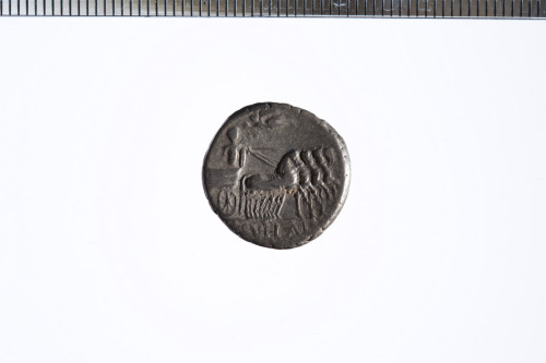 Dritto: Testa galeata di Roma a d.; c.p.. Rovescio: Triumphator in quadriga a d. che viene incoronato da una vittoria e che regge le redini con la mano s. e un caduceo con la d.; c.p.