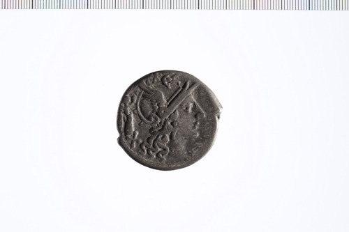 Dritto: Testa di Roma con elmo a d.,a s. Vittoria con corona. Contorno perlinato.. Rovescio: Dioscuri a d. Contorno lineare.
