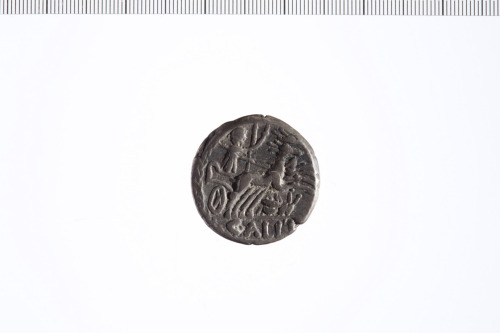 Dritto: Testa femminile a d. con diadema. Contromarca a d. Contorno perlinato.. Rovescio: Diana in biga di cervi a d. con scettro e redini nella mano s. e torcia nella d., faretra in spalla. Sotto la biga una cavalletta. Corona d'alloro.