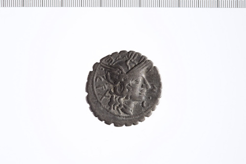 Dritto: Testa di Roma con elmo a d., contorno perlinato.. Rovescio: Guerriero nudo in biga a d. con scudo, carnyx e briglie nella mano s. e una lancia nella d. Contorno perlinato.