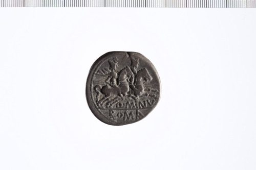 Dritto: Testa di Roma con elmo a d. Contorno perlinato.. Rovescio: Dioscuri a d. Contorno lineare.
