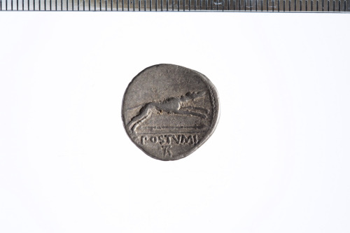 Dritto: Busto drappeggiato di Diana a d. con arco e faretra sopra le spalle; c.p.. Rovescio: Levriero che corre a d.; sotto, una lancia; c.p.