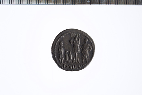 Dritto: Testa della Concordia velata e diademata a d.; c.p.. Rovescio: Trofeo alla cui d. c'è una figura togata, probabilmente Aemilius Paulls, e a s. tre prigionieri, probabilmente il re Perseo di Macedonia e i suoi figli; c.p.