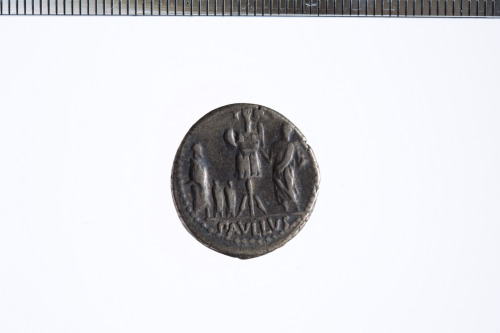 Dritto: Testa della Concordia velata e diademata a d.; c.p.. Rovescio: Trofeo alla cui d. c'è una figura togata, probabilmente Aemilius Paulls, e a s. tre prigionieri, probabilmente il re Perseo di Macedonia e i suoi figli; c.p.