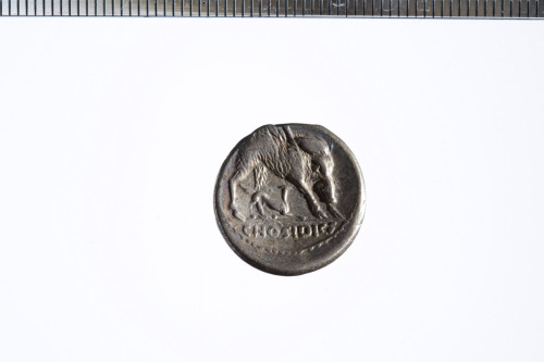 Dritto: Busto drappeggiato di Diana a d. con arco e faretra sopra le spalle; c.p.. Rovescio: Cinghiale ferito da una lancia e attaccata da un cane a d.; c.p.