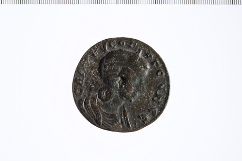 Dritto: Busto drappeggiato di Salonina a d.. Rovescio: Statua cultuale di Hera Samia, frontale, tra due pavoni; ai lati della testa, crescente e stella (luna e sole); contorno perlinato.