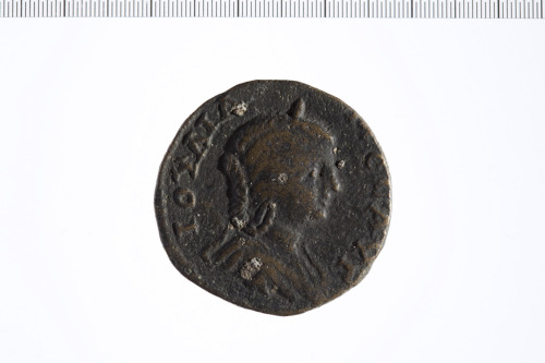 Dritto: Busto di Giulia Maesa (?) a d. drappeggiata.. Rovescio: Nifa seduta su trono di fronte che allatta il piccolo Pan. Flauto a s.