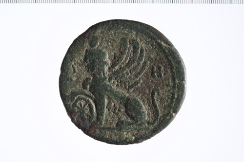 Dritto: Busto laureato di Adriano a d., paludato, di tre quarti, di spalle.. Rovescio: Androsfinge coronata con parrucca e modius, seduta a s. con zampa d. su ruota.