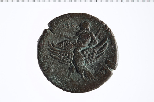 Dritto: Busto laureato di Adriano a d., paludato, di tre quarti, in avanti.. Rovescio: Zeus laureato, sdraiato a s., tiene patera e scettro; sollevato da un'aquila a s. con testa a d. e ali spiegate, su fulmine.