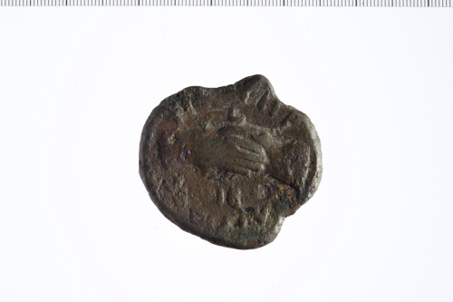 Dritto: Busto laureato di Adriano a d., paludato, di tre quarti, di spalle.. Rovescio: Due mani destre che si stringono.