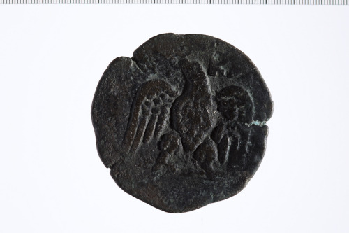 Dritto: Busto laureato di Antonino Pio a d., paludato, corazzato, di tre quarti, in avanti.. Rovescio: Aquila di fronte, con le ali spiegate, gira la testa a s., tiene una corona nel becco.