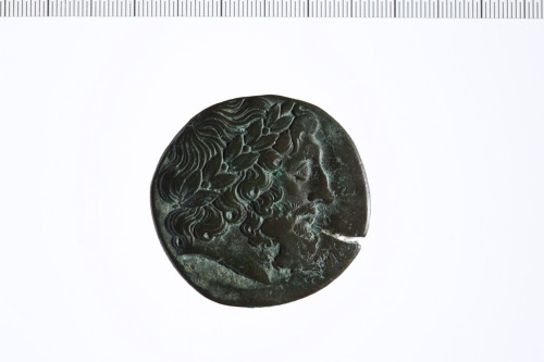 Dritto: Testa laureata di Zeus barbato a d.. Rovescio: Eroe nudo elmato che avanza a d. con lancia e scudo; in campo a s. segno di valore P greco