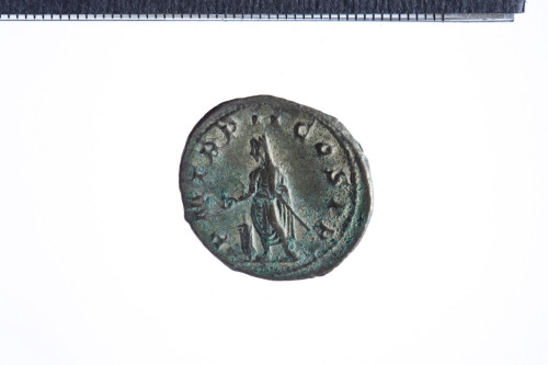 Dritto: Busto radiato di Gordiano III a d. con corazza e paludamentum, di tre quarti di spalle; contorno perlinato.. Rovescio: Gordiano velato, stante in posizione frontale, la testa volta a s.,reggente bacchetta nella s. e patera nella d. protesa sopra ad un altare; contorno perlinato.